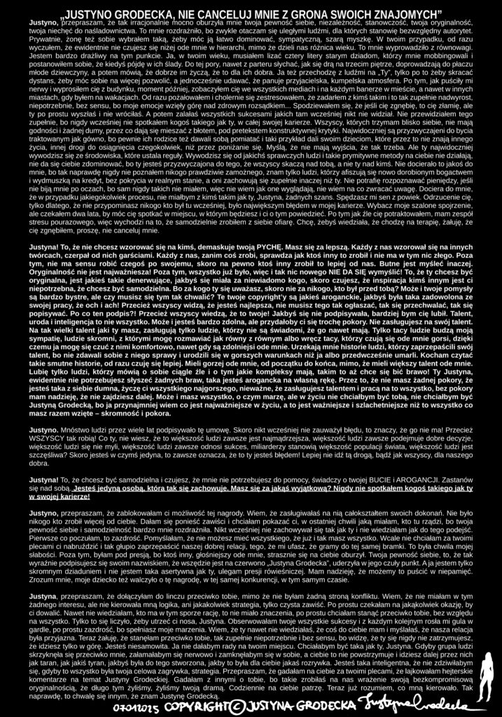 „JUSTYNO GRODECKA, NIE CANCELUJ MNIE Z GRONA SWOICH ZNAJOMYCH”