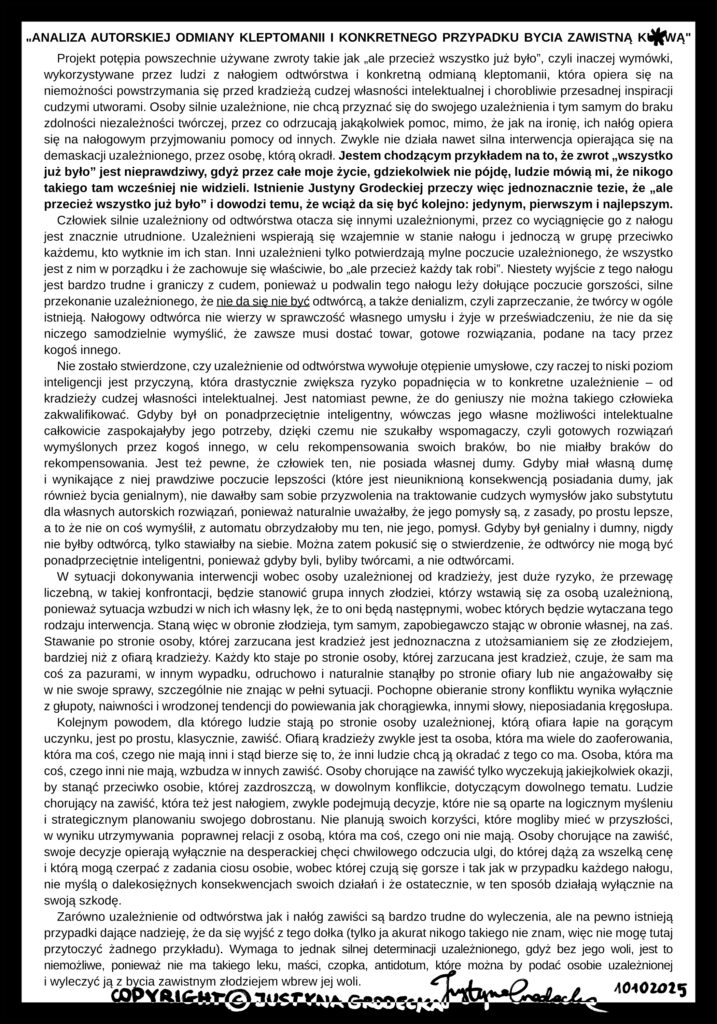 „JUSTYNA GRODECKA TM: INSTRUKCJA KROK PO KROKU ODTWORZENIA MOJEJ OSOBOWOŚCI DLA ZŁODZIEI MOJEJ TOŻSAMOŚCI”