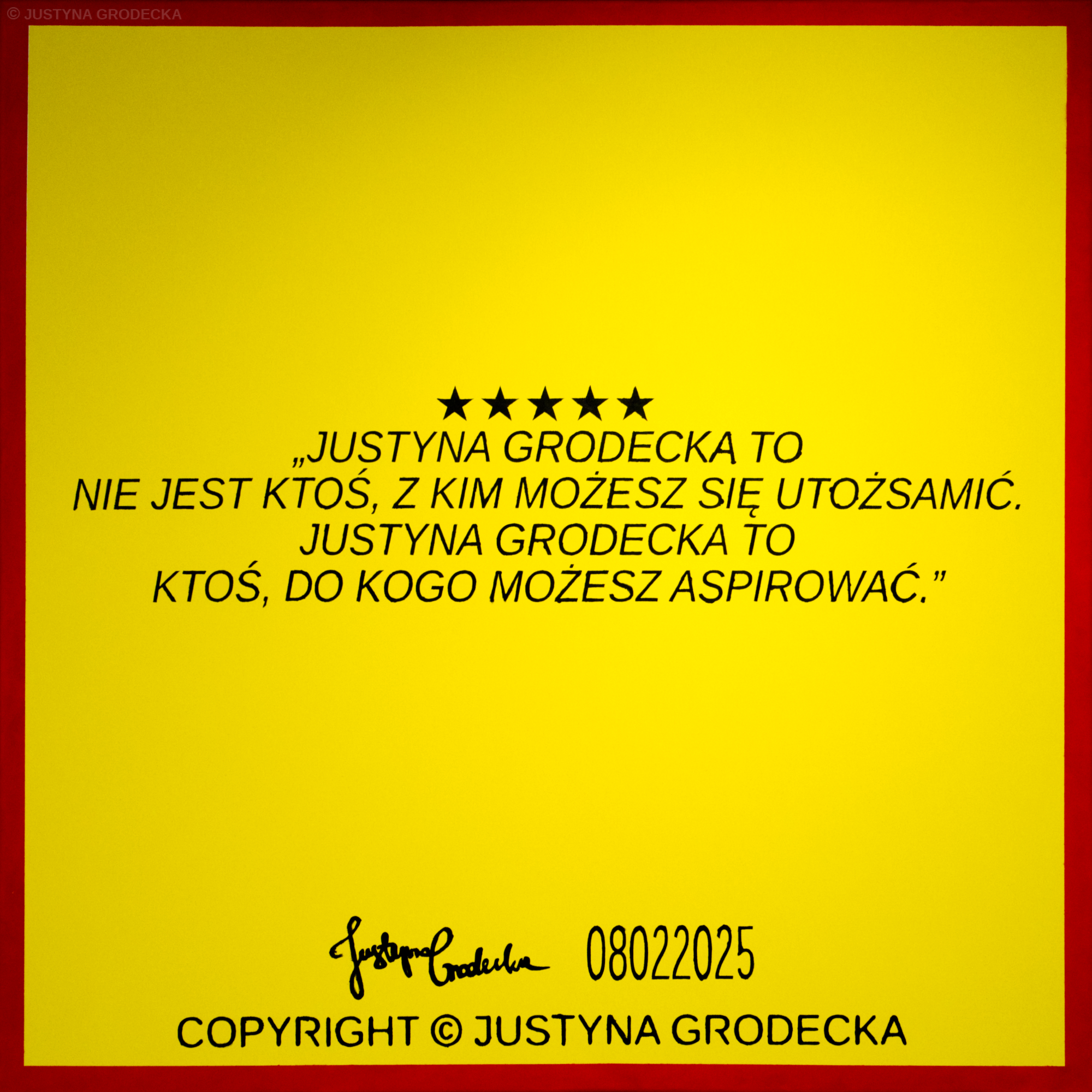 „JUSTYNA GRODECKA: CHCESZ BYĆ MNĄ, ALE GDYBYŚ BYŁ JAK JA, NIE CHCIAŁBYŚ BYĆ NIKIM INNYM.”,